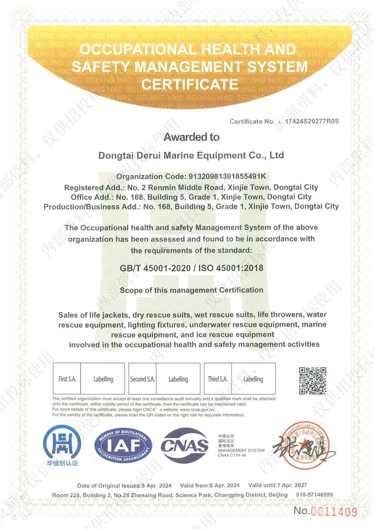 • 職業(yè)健康安全管理體系認(rèn)證證書